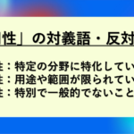 続いては、これまで紹介した対義語・反対語の使い分けとニュアンスの違いを確認していきます。