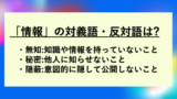 言葉の意味を深く理解するには、類義語と対義語の両方を知ることが効果的です。