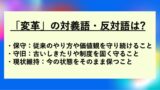 続いては、これまで紹介した対義語・反対語の使い分けとニュアンスの違いを確認していきます。