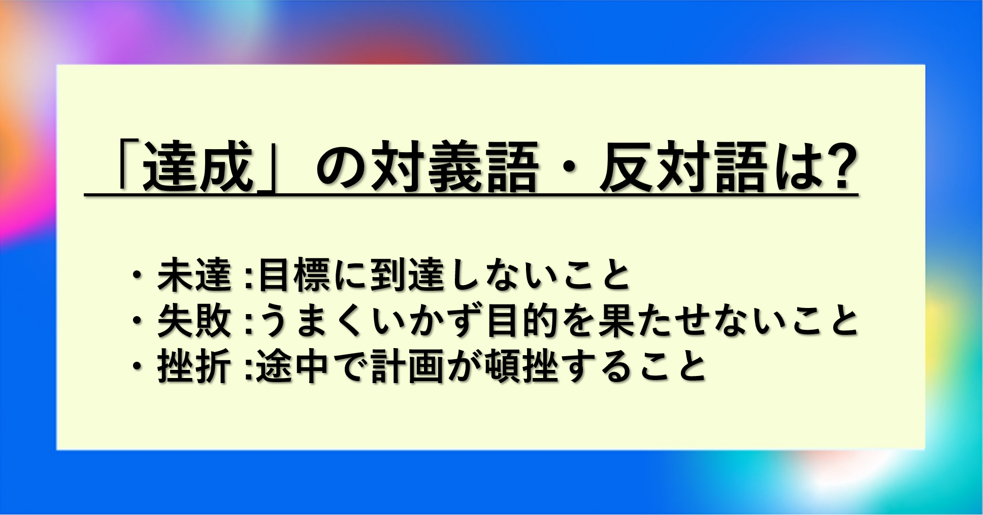 対義語を知ることで、「達成」という言葉の本質が見えてきます。